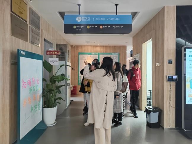 活动开始后,同学们在人力资源部总监凌云老师的带领下,走进新东方公司内部参观公司办公和教学环境,了解企业文化和办学方式。