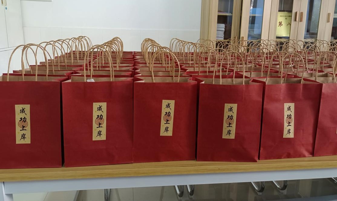 讲话完毕,公司领导给考研同学发放了考研礼包。考研礼包有文具套装、零食礼包、明信片、橙子和苹果,代表着公司的人文关怀和美好祝愿,祝福英国上市公司365学子心想事橙、苹稳上岸。