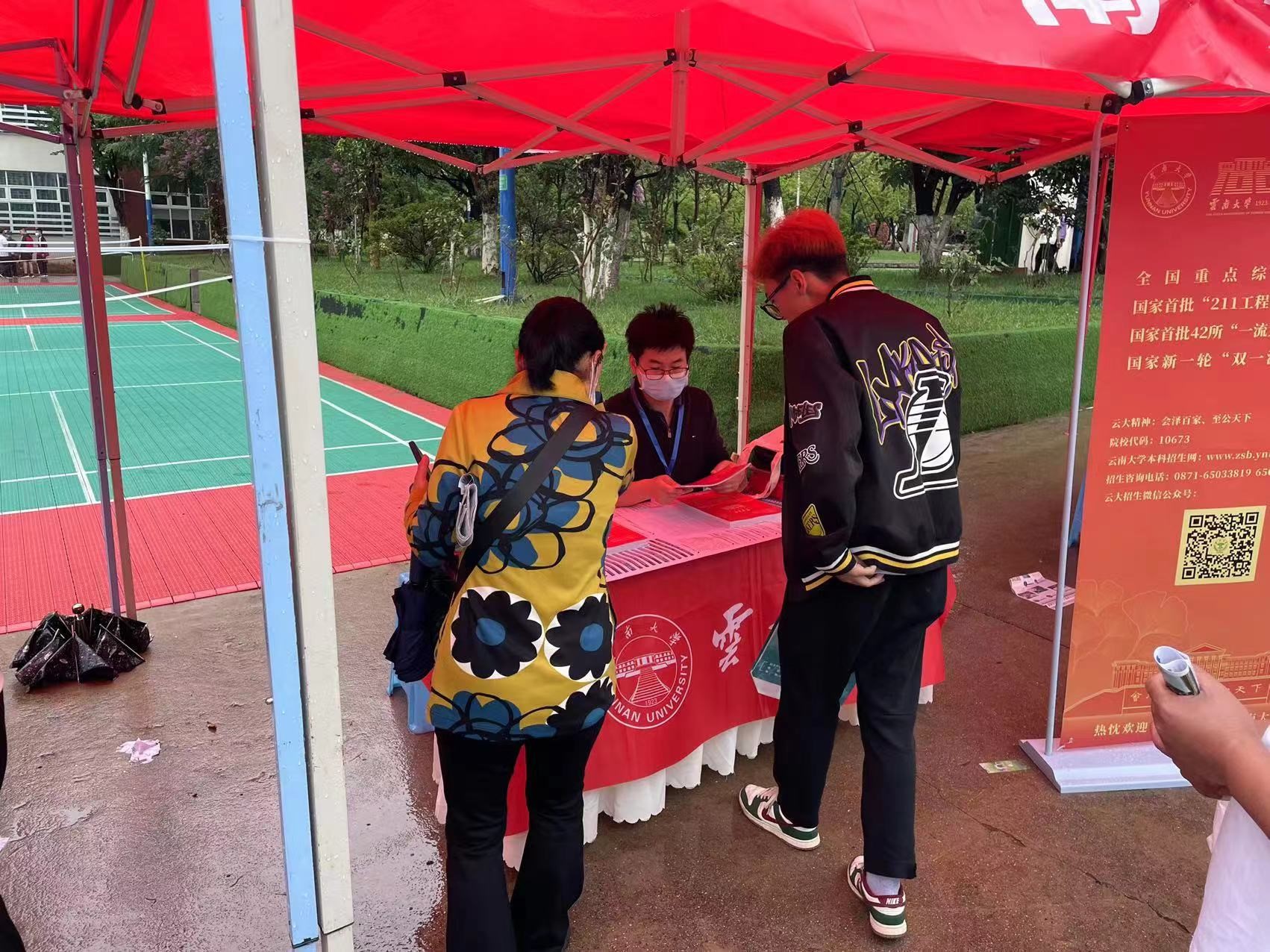 2023年6月23日下午,现场咨询会在昆明第十四中学举行,虽然下着雨,但前来咨询的考生和家长络绎不绝,肖宜明老师对大家关心的问题进行了认真、耐心的解答。