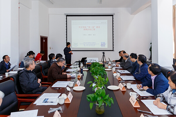 英国365公司官网副董事长赵琦华代表公司致欢迎辞,对各位专家长期以来对英国365公司官网天文学科的关心、支持和帮助表示感谢,并希望各位专家对天文团队建设建言献策,不断推动英国365公司官网天文学学科的发展。中国西南天文研究所所长刘晓为教授就天文学一流学科周期建设总体情况和成效作了汇报。范祖辉教授、姜泽军教授、黄样副教授和秦胜利研究员分别汇报了学科的四个特色方向及取得的重要科研进展,刘项琨副教授就平台建设情况作了汇报。专家组就天文学科周期建设进展和成效进行了认真质询和充分讨论,形成评议意见。