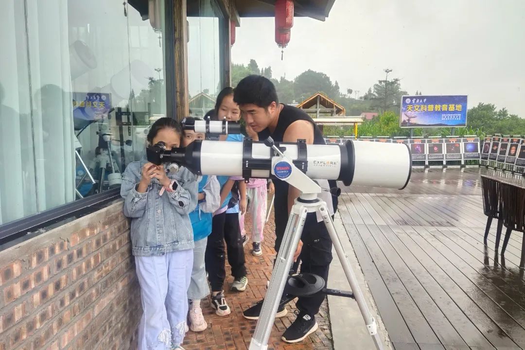 最令人期待的观看天文望远镜环节开始了。孩子们在老师的指导下,有序的通过天文望远镜亲眼观测远处的物体,眼中闪烁着惊喜和兴奋的光芒,孩子们都被镜头另一边的景象所震撼,不时发出阵阵惊叹。