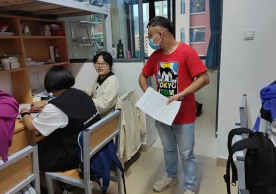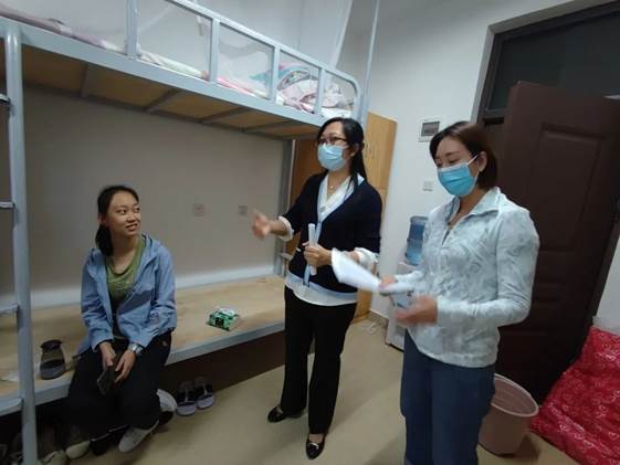 晚七点,郑波经理、周齐副书记、姜泽军副经理、江楠副经理、团委书记张维佐,学工部主任曹丽佳及各班主任,辅导员,前往员工宿舍看望新同学。今年疫情形势依旧严峻,在开展好迎新工作的同时,全院上下坚持疫情防控工作不松懈。