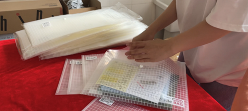 志愿者在封装新生材料